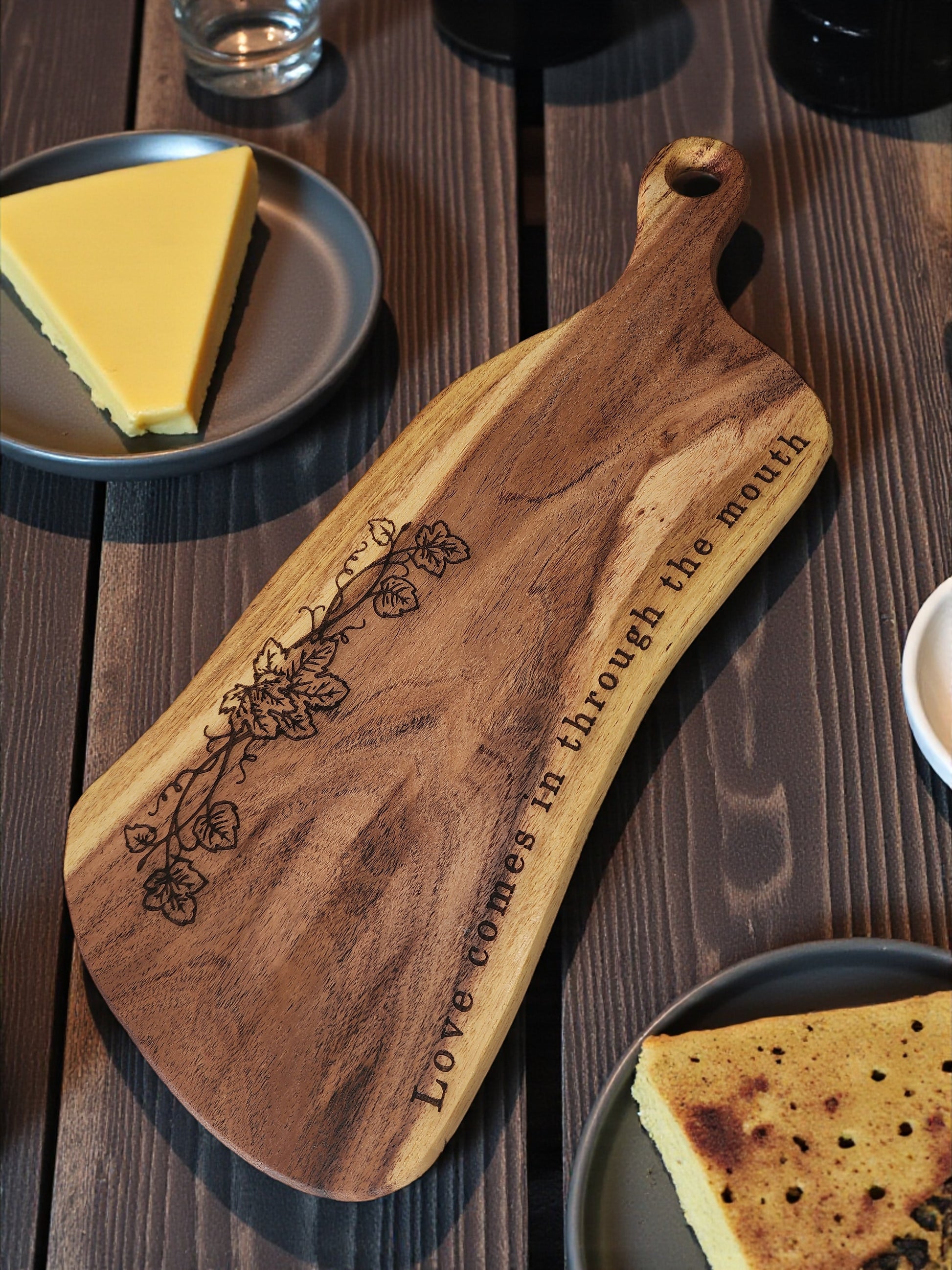 This artisan cutting board combines functionality with natural beauty. The rich tones and unique grain patterns of mesquite wood make each board a one-of-a-kind piece. Whether you're preparing meals or entertaining guests, this handcrafted board brings warmth and character to your culinary experience.