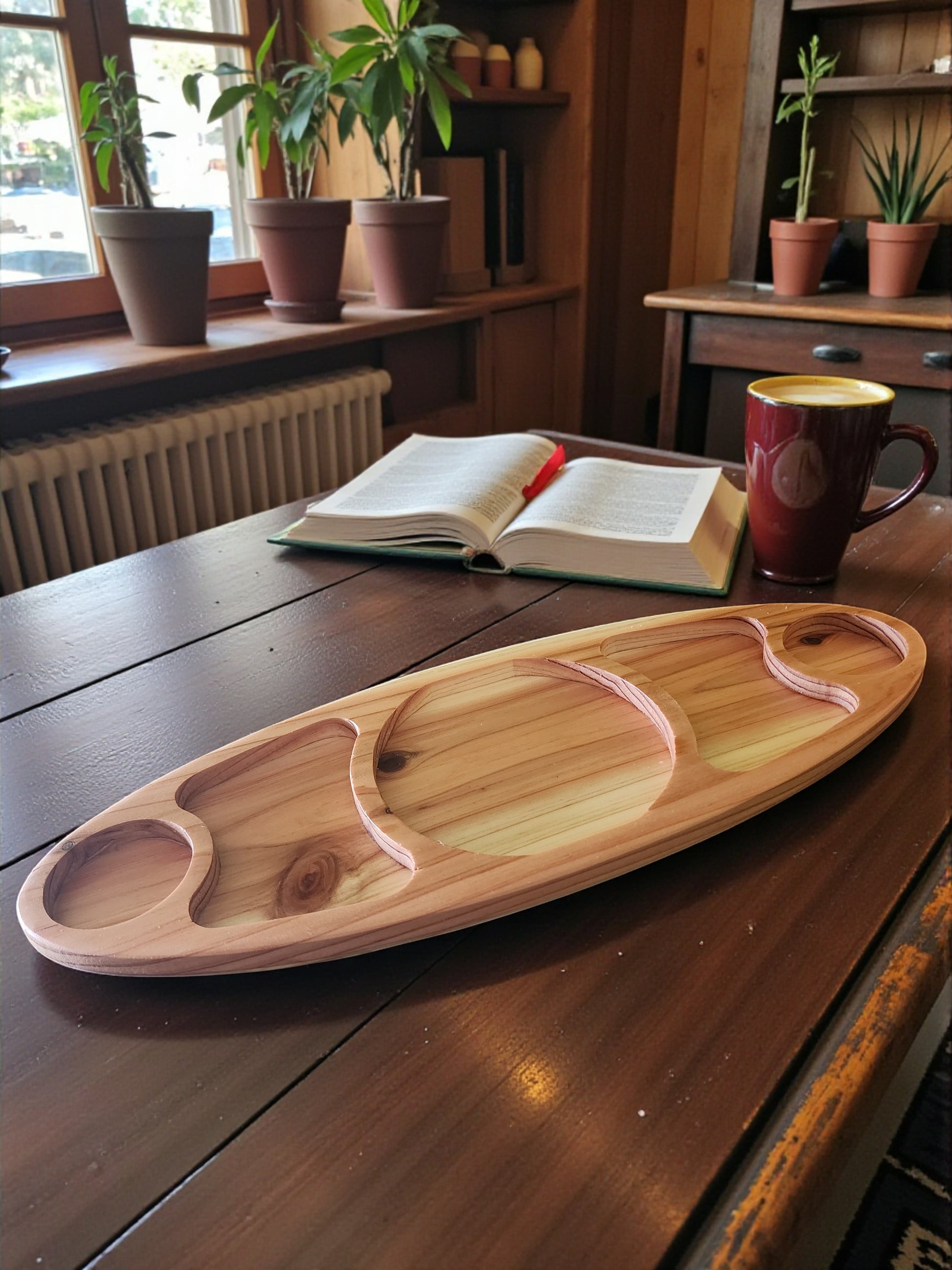 Bring a touch of charm to your table with this handmade wooden serving tray , beautiful crafted in a creative inspired shape.